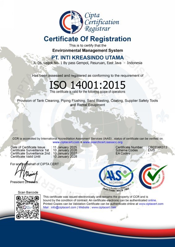 PT. Inti Kreasindo Utama adalah perusahaan yang melayani jasa tank cleaning Indonesia, pengelolaan limbah B3, sandblasting, coating paint, dan lainnya. Melayani seluruh kota dan kabupaten di Indonesia.